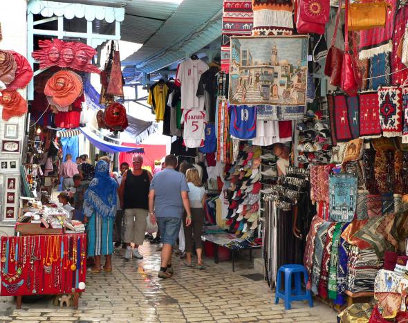 Hrana in pijača Obilna ponudba hrane v hotelih in skoraj vsepovsod bife zajtrki in večerje so značilnosti otoka. Hrana je evropska, tako da je primerna za naš okus in tudi želodec. Morda pa bo opoldne vseeno koga zamikal kakšen lokalni prigrizek. Tunizijska kuhinja je nekakšna mešanica berberske, turške in italijanske kuhinje, seveda tudi pekoča. Najbolj znana je couscous, ki je lahko narejen na najmanj 50 različnih načinov. Je nekakšna mešanica pšeničnega zdroba z zelenjavo, mesom ali ribami in seveda začimb, ki dajo jedi značilen okus. Alkoholne pijače lahko brez problema dobite v hotelih, v barih pa ne. Občutljivejši naj vzamejo s seboj osnovna zdravila proti diareji (organsko oglje ali linex)
