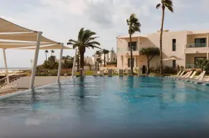Hotel se nahaja neposredno na dolgi, položni peščeni plaži z belim peskom, ki velja za eno najlepših v Tuniziji. Senčniki in ležalniki so za goste brezplačni.